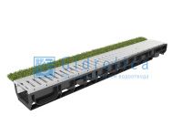 Комплект Gidrolica Sport: лоток водоотводный ЛВ-10.14,5.08 пластиковый с решеткой РВ-10.14,2.100 стальной оцинкованной, кл.А15 в Екатеринбурге